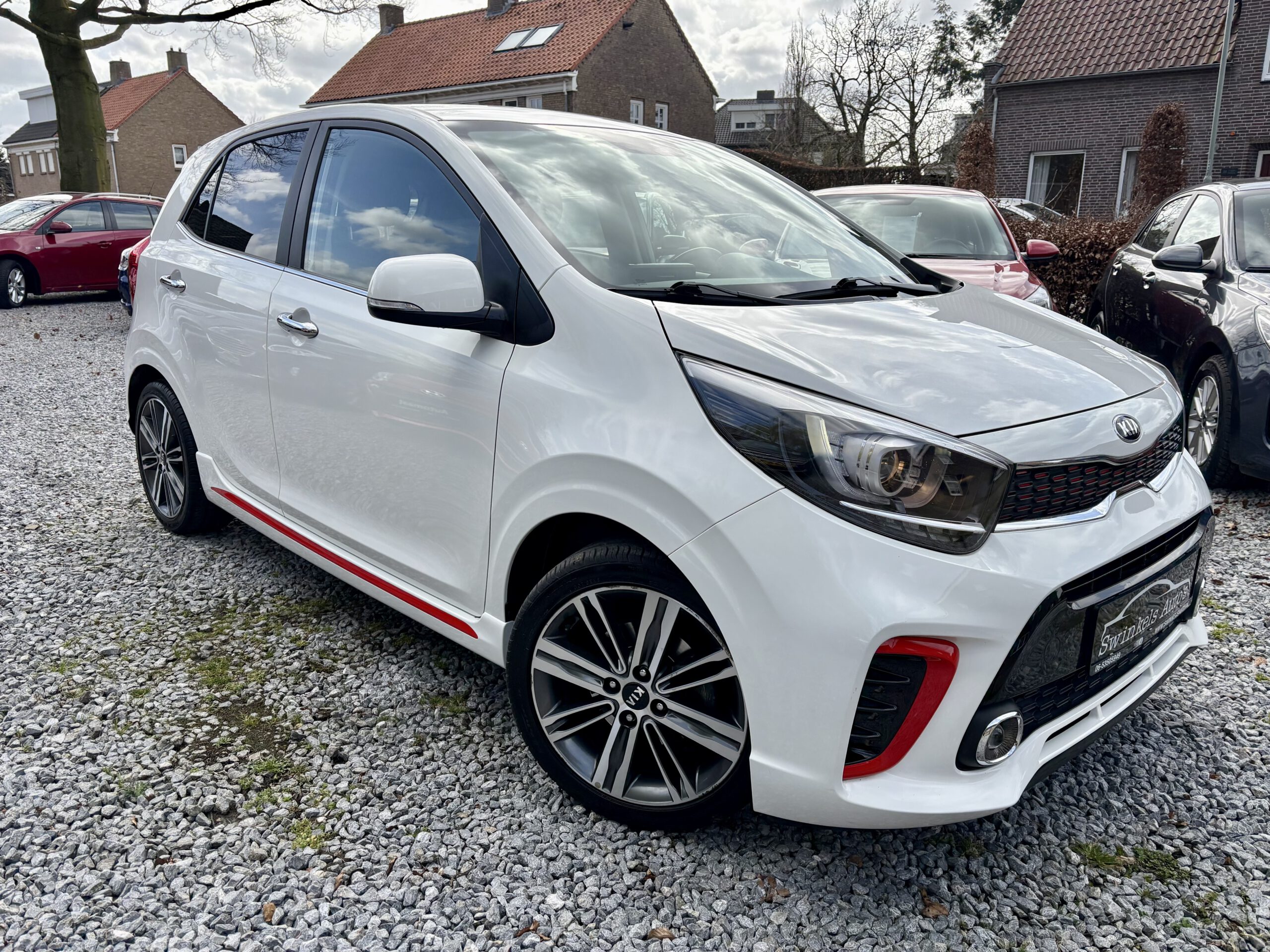 De Kia Picanto 1.0 T-GDI GT-Line (Hatchback 5-dr.)is een compacte, sportieve stadsauto met een 67 pk driecilindermotor. De GT-Line uitvoering biedt een uitgesproken sportieve uitstraling met kenmerkende side-skirts, 16-inch lichtmetalen velgen, LED-dagrijverlichting en een luxe interieur, inclusief lederen bekleding, climate control en een achteruitrijcamera.