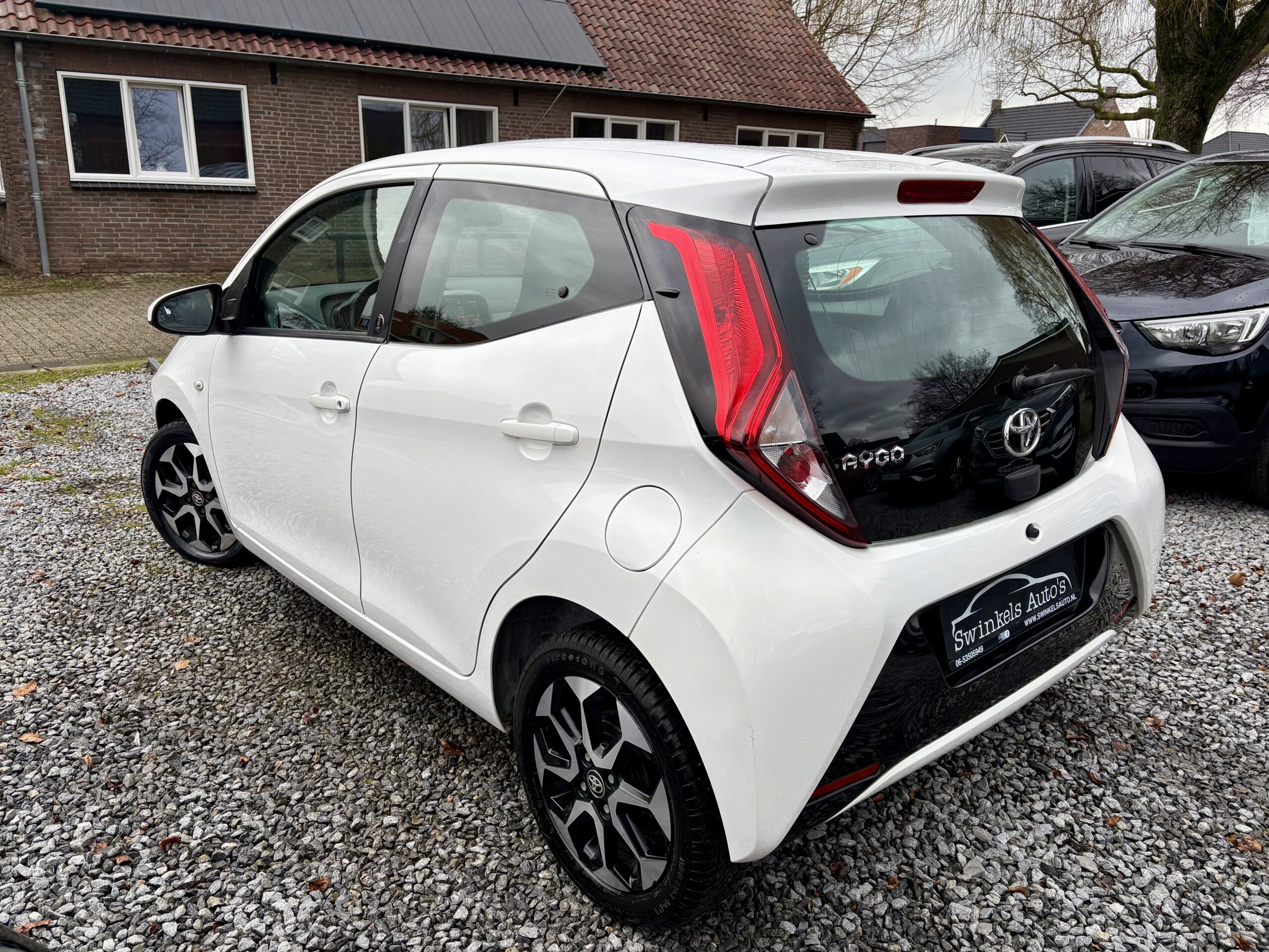 Te koop Toyota Aygo 1.0VVT-i x-play uit 11-2021. De kilometerteller heeft net pas de 23000km gepasseerd. Met een navigatiesteem (via apple carplay/androïd), parkeersensoren, achteruitrijcamera, lichtmetalen velgen, speedlimit, lederen stuur met stuurbediening, rijstrooksensor en elektrisch bedienbare ramen is dit een luxe uitvoering te noemen. Wij hebben nieuwe 4-seizoenen banden op de auto gelegd.